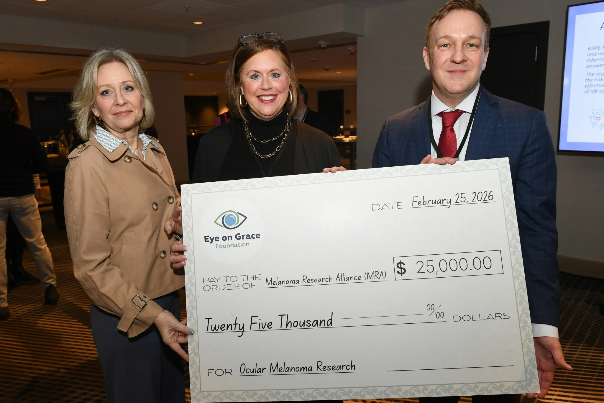 The Eye on Grace team was in Washington, D.C. last week, participating in the Melanoma Research Alliance (MRA) Scientific Retreat: Momentum for a Cure. It was exciting to make a $25,000 donation to MRA from funds raised in our 2025 Eye Patch Challenge! Every dollar to MRA funds research toward a cure, and Eye on Grace is committed to ensuring patients can access the therapies, clinical trials, and treatment they need - no matter how far they have to travel!