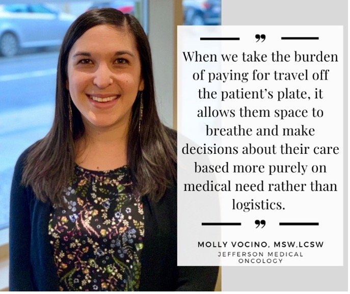 I have had several patients who needed travel support to be able to participate in clinical trials that prolonged their lives. Many clinical trial sponsors offer support for travel and lodging, but often, it is not enough to meet the need. When we take the burden of paying for travel off the patient’s plate, it allows them space to breathe and make decisions about their care based more purely on medical need rather than logistics. And it is a huge relief for our team here that fewer patients end up declining care that might otherwise really help.”